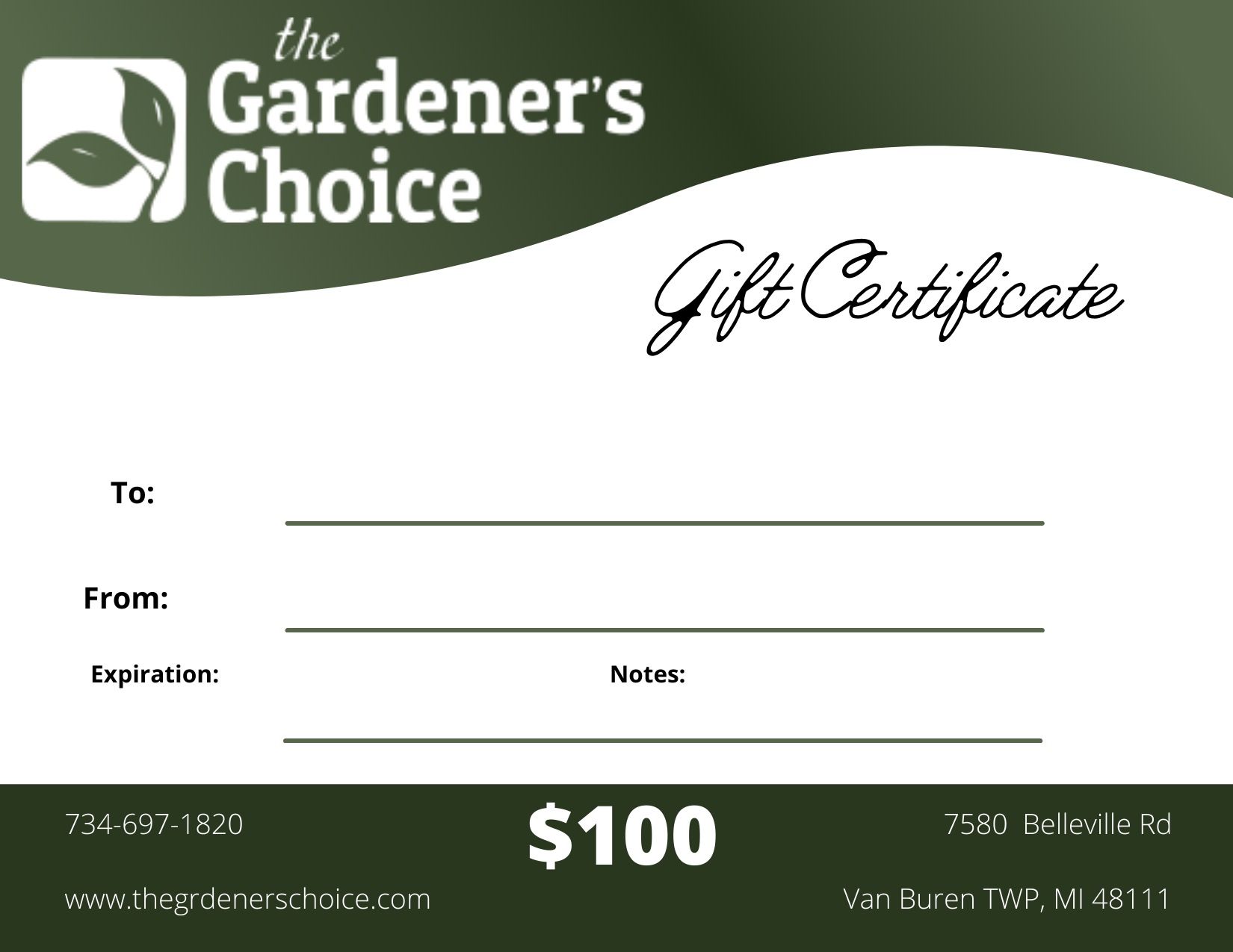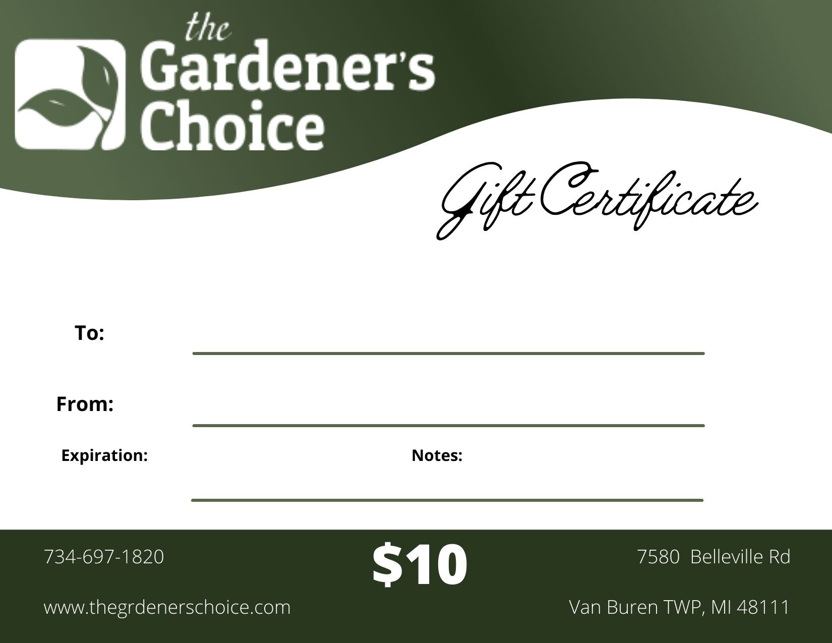 A gift certificate from The Gardener's Choice is a thoughtful gift for any garden lover.